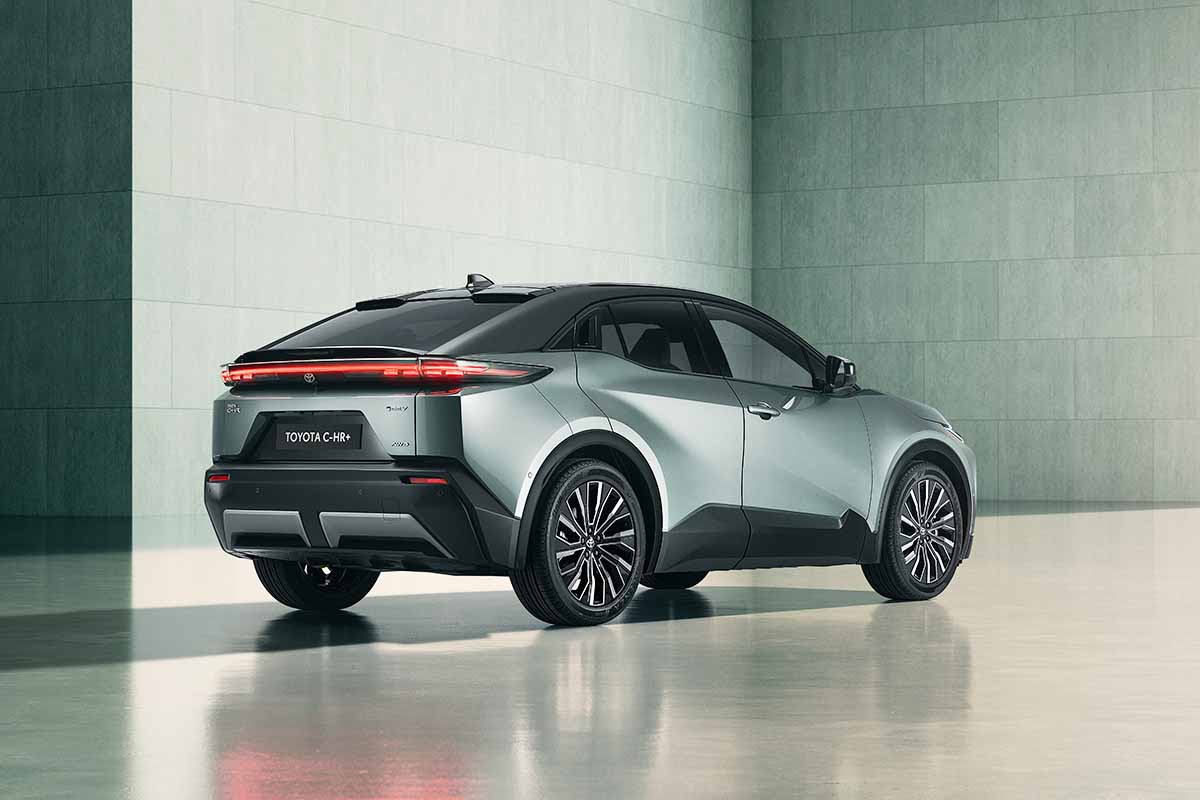 Toyota C-HR+ kan fås med et 77 kWh litium-ion-batteri, der giver en rækkevidde på op til 607 kilometer målt efter WLTP-standarden. Den forhjulstrukne version yder 224 hk og har en startpris på 299.990 kroner med Active-udstyrsniveau.
