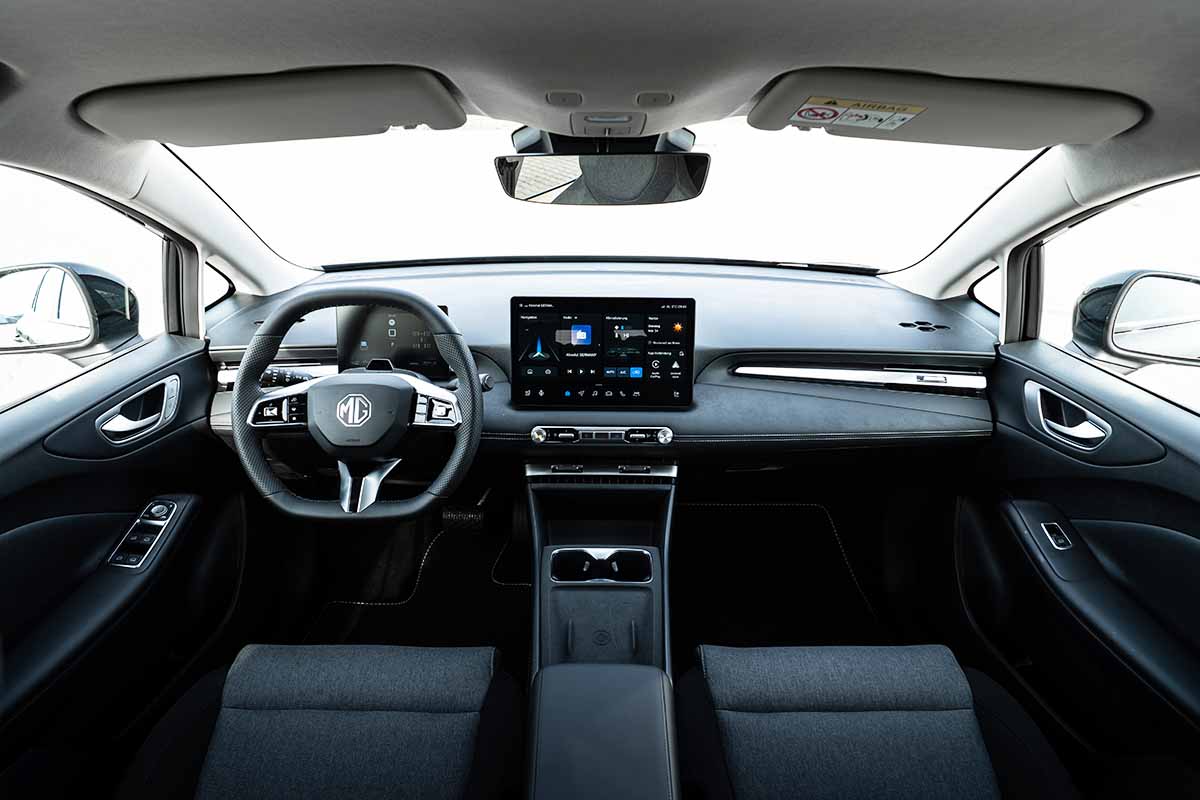 Bilen er udstyret med en todelt skærm med 12,8” infotainment og 7” digitalt førerdisplay, trådløs Apple CarPlay og Android Auto, MG iSMART-opkobling og fysiske knapper til centrale funktioner. Premium-versionen tilbyder trådløs opladning og 360-graders panoramakamera for nem parkering.