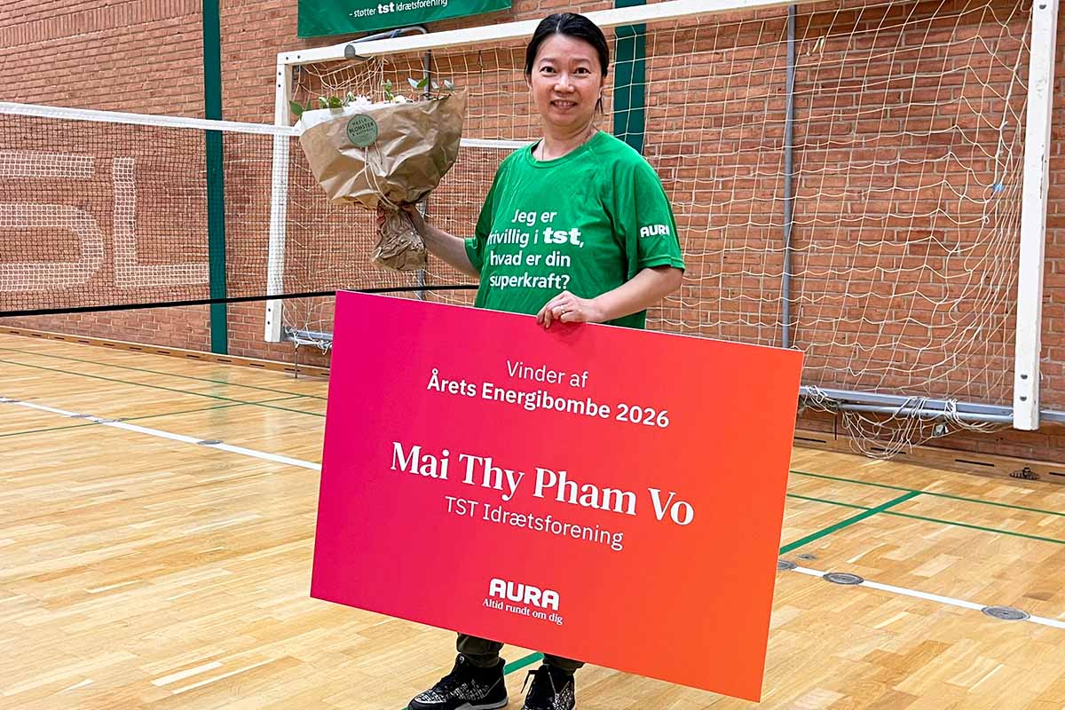 Mai Thy Pham Vo er med et overvældende flertal blevet kåret som Årets Energibombe 2026. Prisen uddeles hvert år af energi- og fiberkoncernen AURA til en frivillig, der yder en særlig indsats for det østjyske foreningsliv.